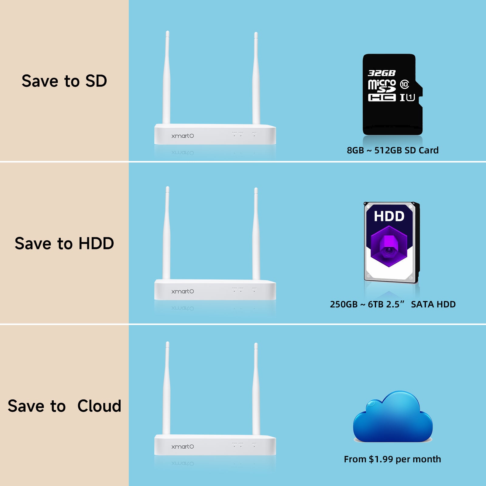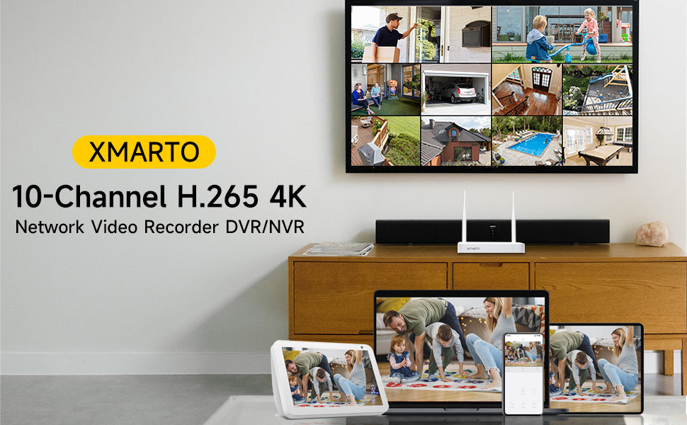 With the router-sized 4K NVR, you can view, record and manage up to 10 XMARTO security cameras on one single monitor/ TV.