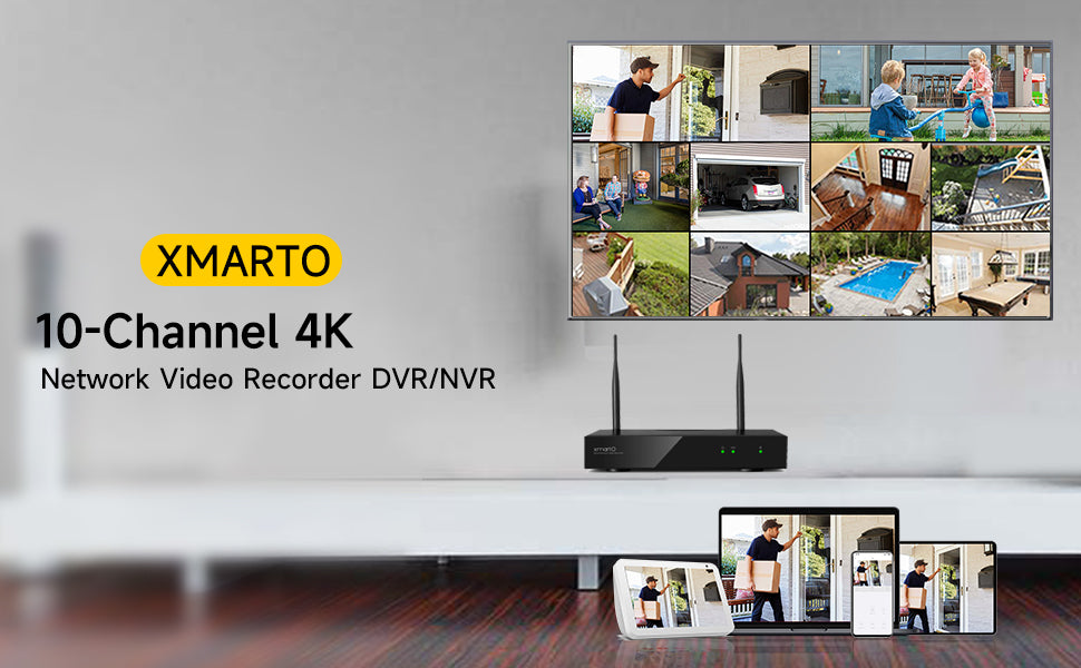 With the router-sized 4K NVR, you can view, record and manage up to 10 XMARTO security cameras on one single monitor/ TV.