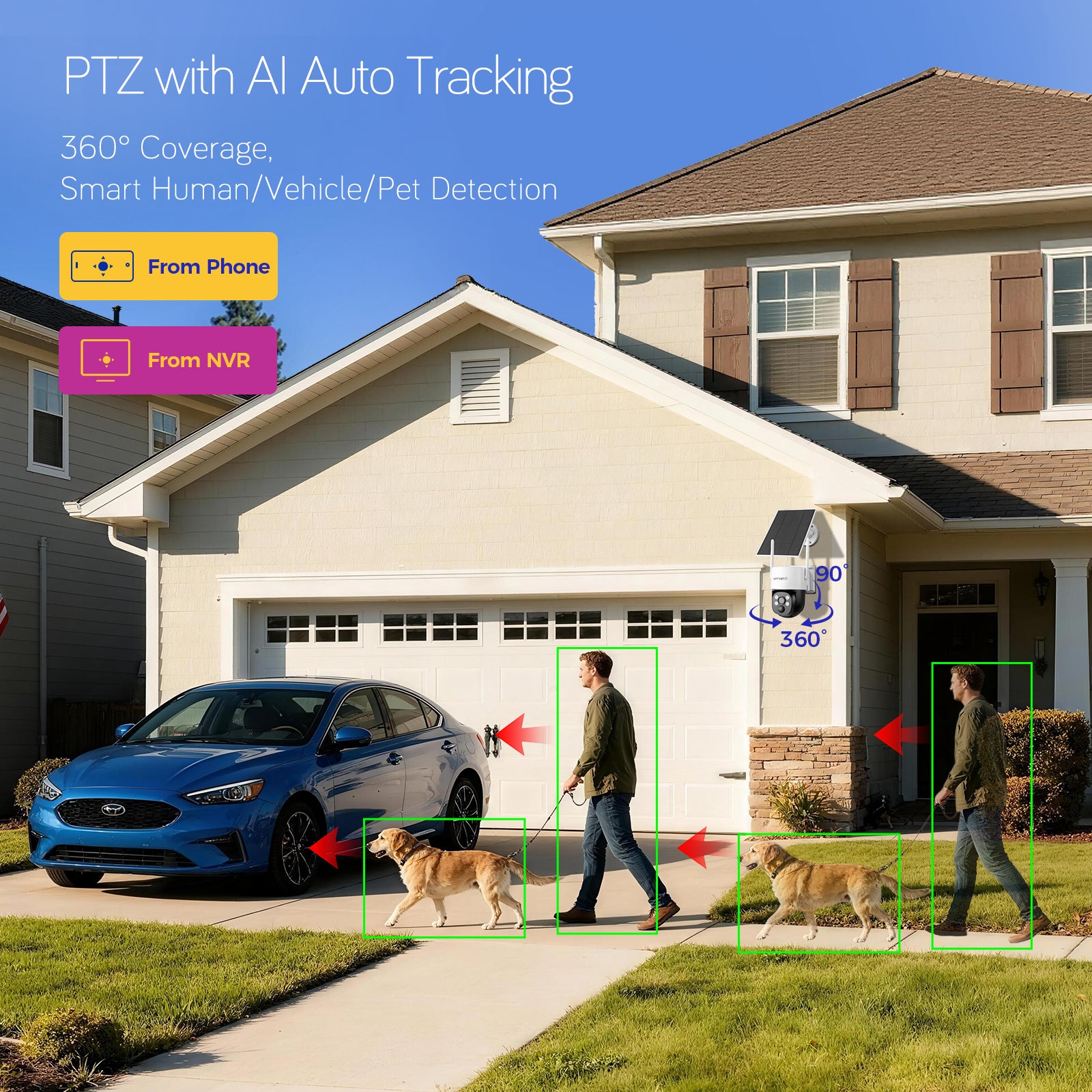 xmartO QHD Wire-Free Solar Security Camera Outdoor/Indoor Wireless, 5G Dual Band WiFi6, Pan Tilt Zoom, Long-Lasting Solar Battery Home Camera