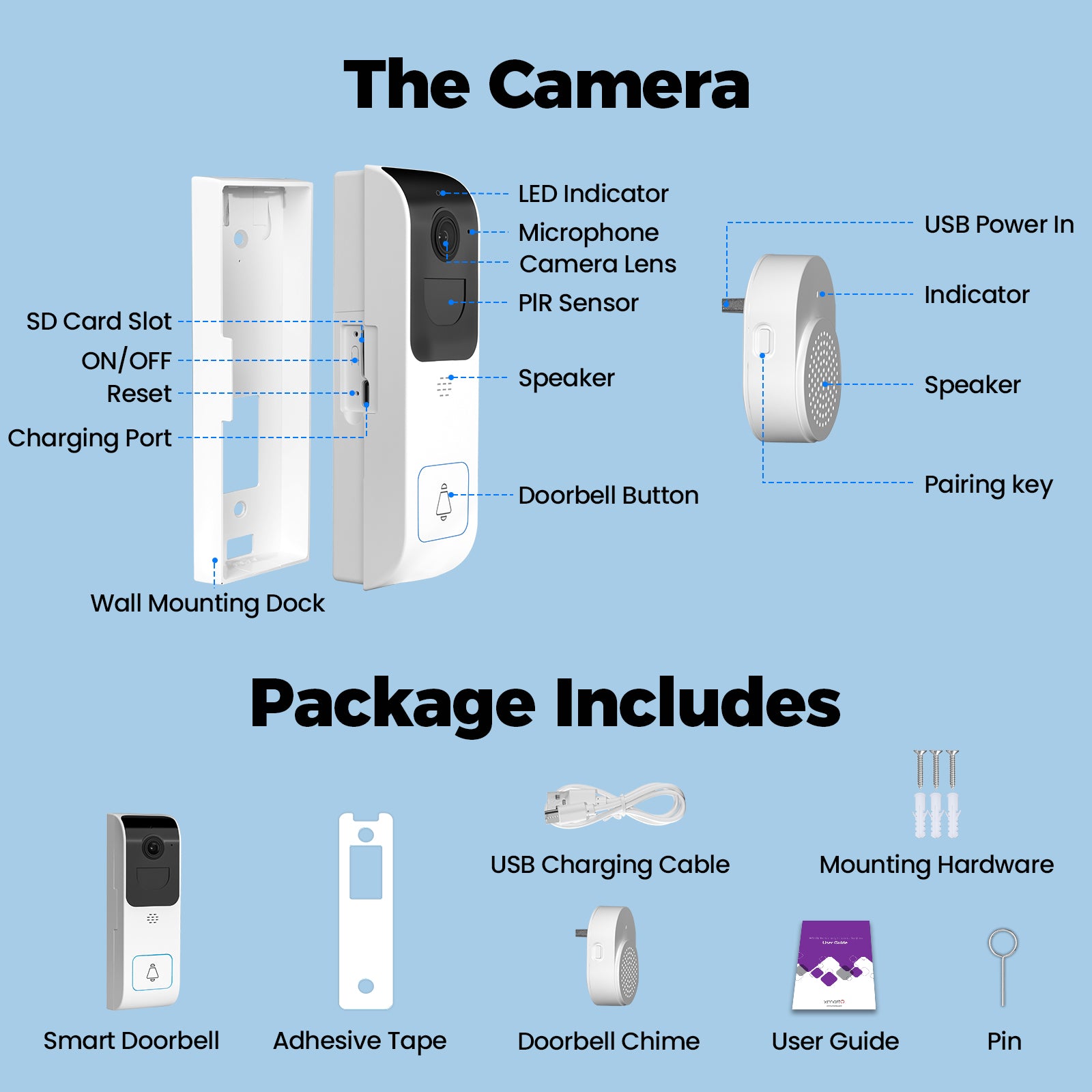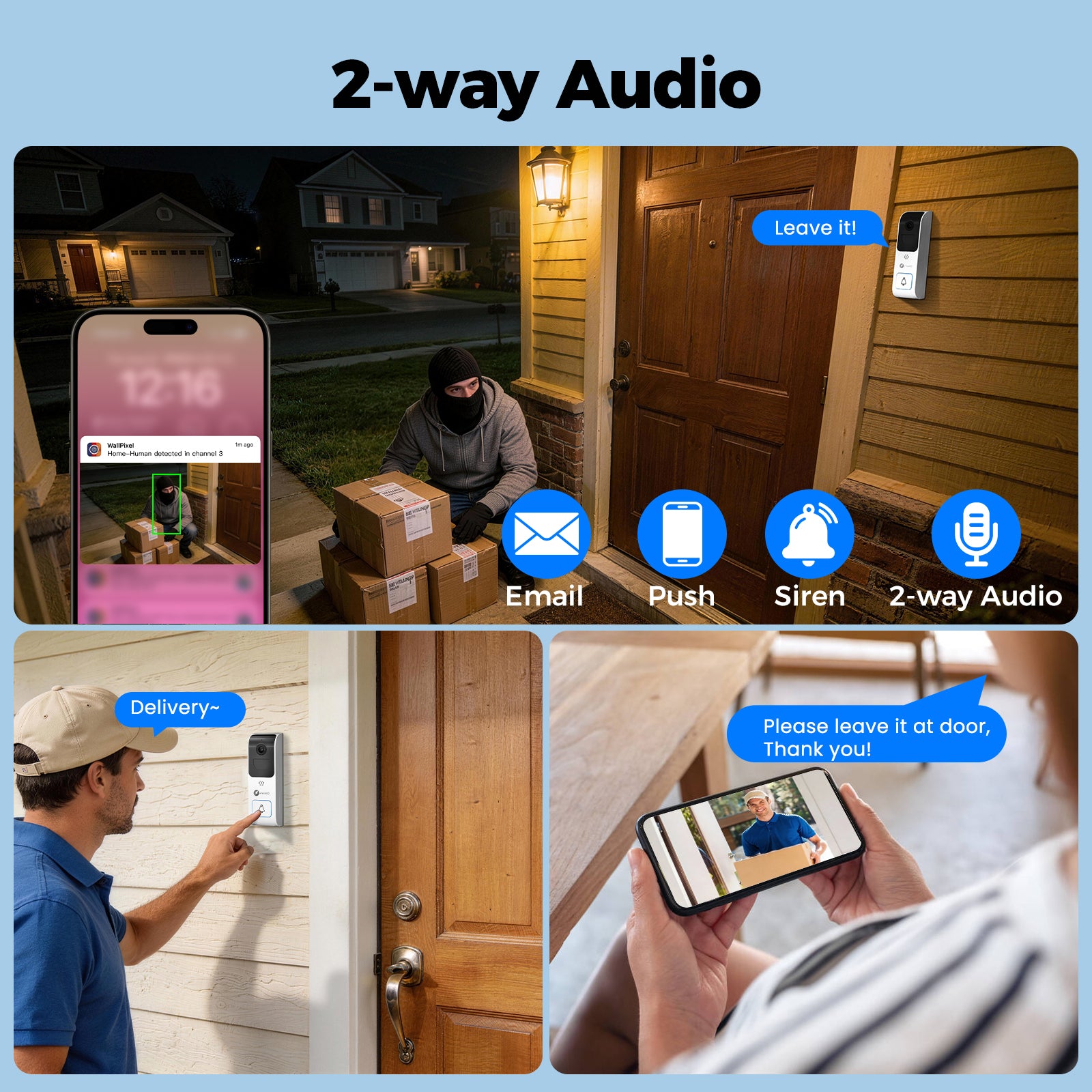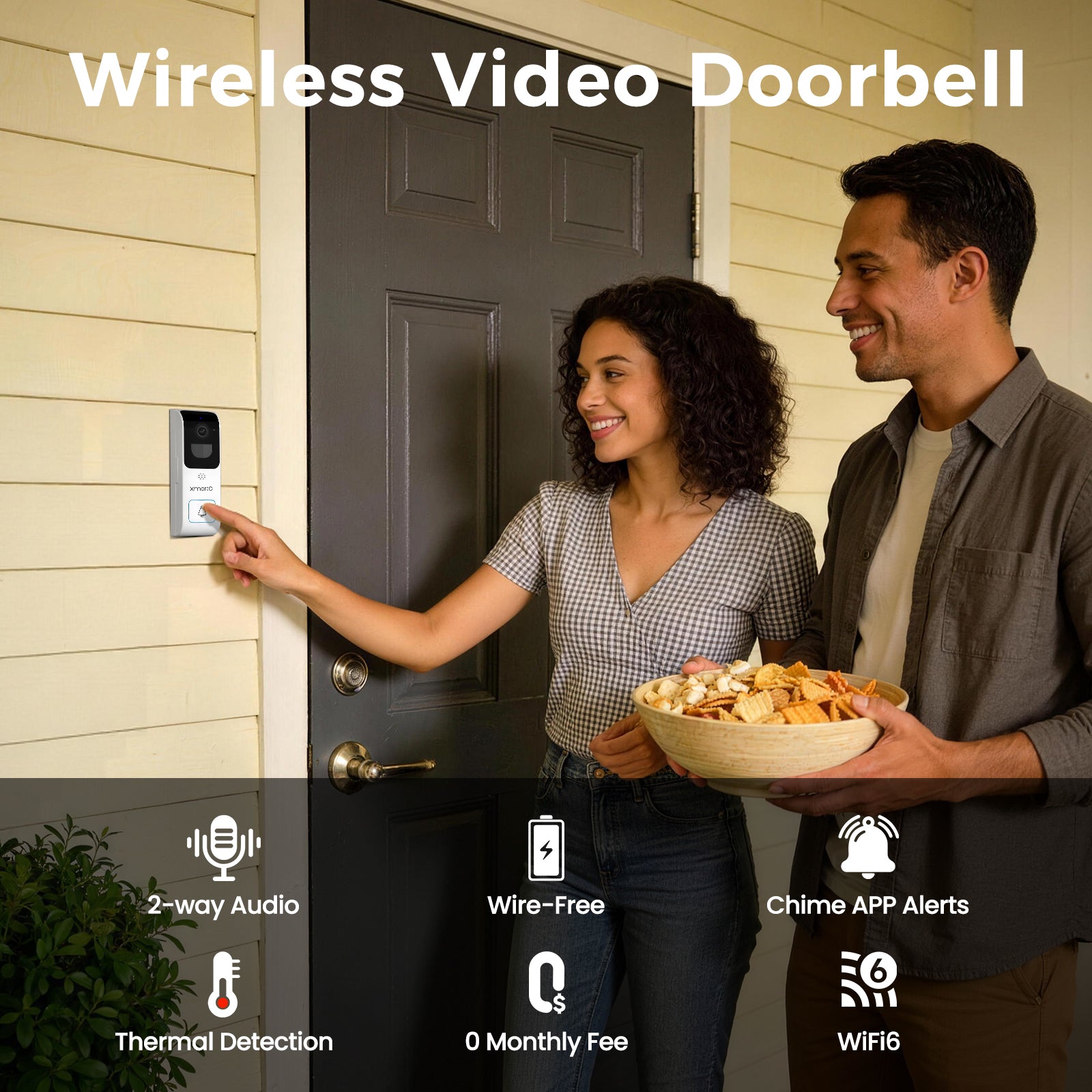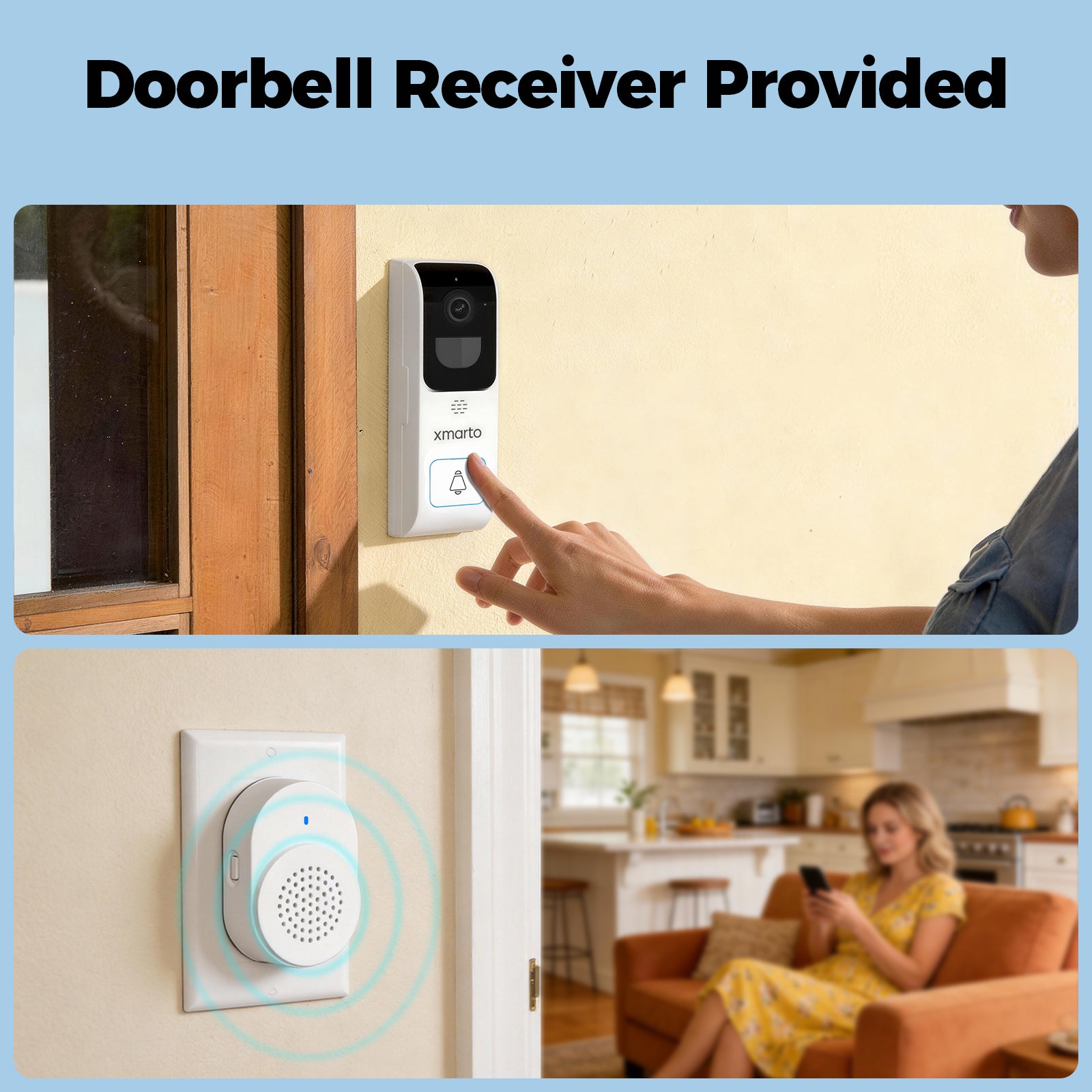 XMARTO 2.4G/ 5G Wireless Smart Video Doorbell for Home Security, Live View Surveillance w. 2-way Audio, Motion/AI Detection & Alerts, Easy Setup, No Monthly Fee,w. Chime (works with NVR or Standalone)
