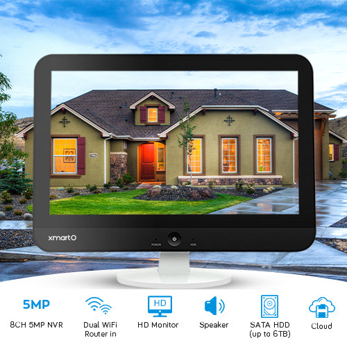 With All-in-one 12'' NVR Monitor, it is with 8 channels and 5MP resolution. You can add up to 8 xmartO WiFi cameras, from 720p cameras to 5MP cameras.