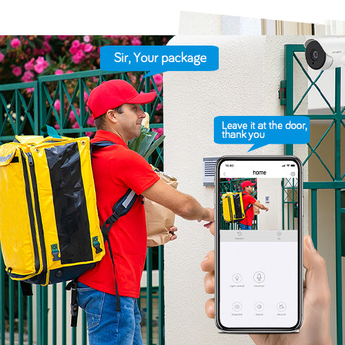 With Built-in microphone and speaker, you can hear and talk back to your family, pet or the visitors on your mobile phone no matter where you are.