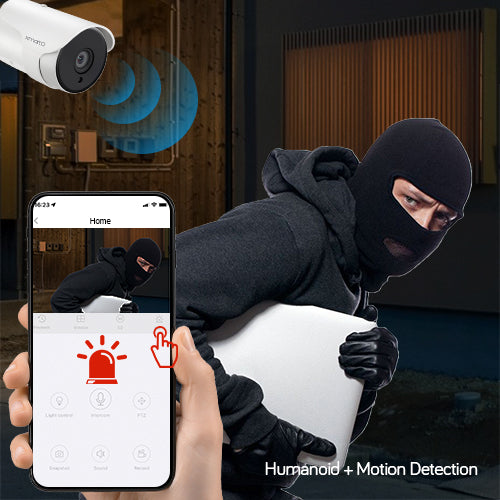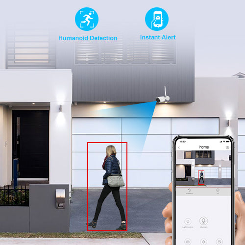 Powered with AI human detection, when people detected, the camera captures a human shape and send instant notification to your phone. It can reduce the false alarm.