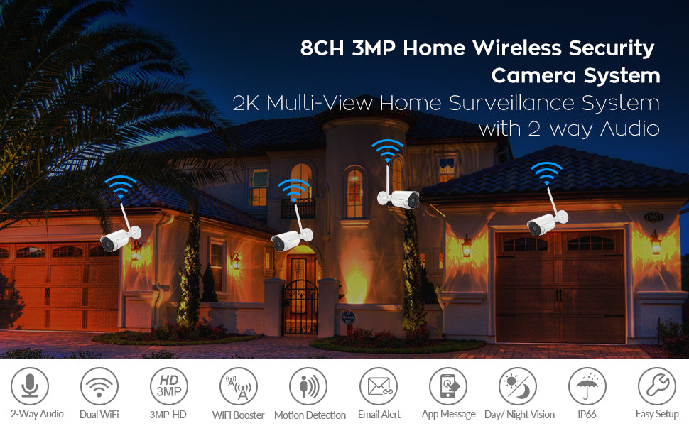 The 8CH wireless security camera system allows you to add 8 cameras in total.