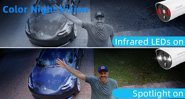 With motion-triggered spotlights, captures important details such as color of clothes and vehicles.