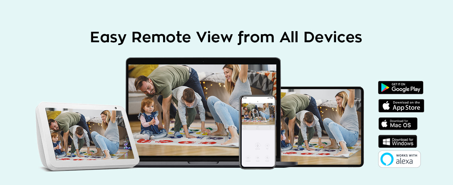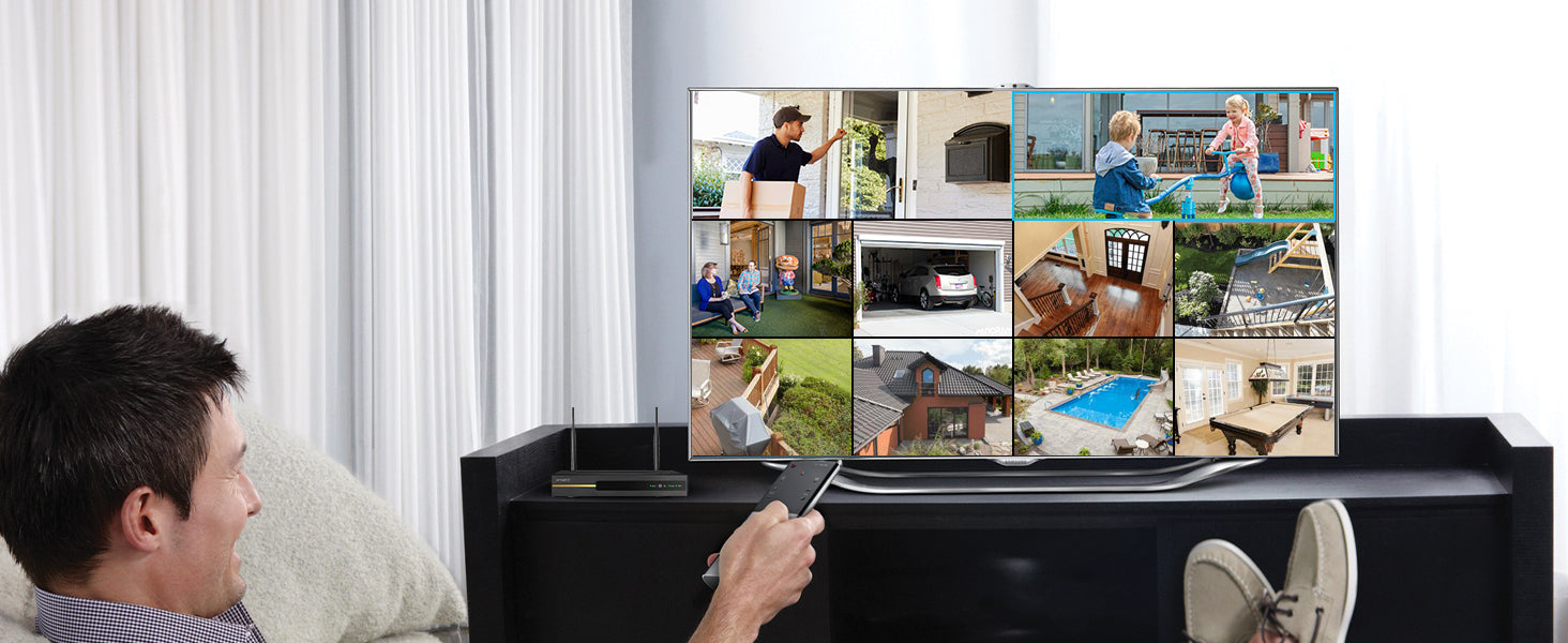 By connecting the NVR to your home WiFi, you can view the cameras from anywhere anytime on iOS, Android, PC, Mac and Alexa.