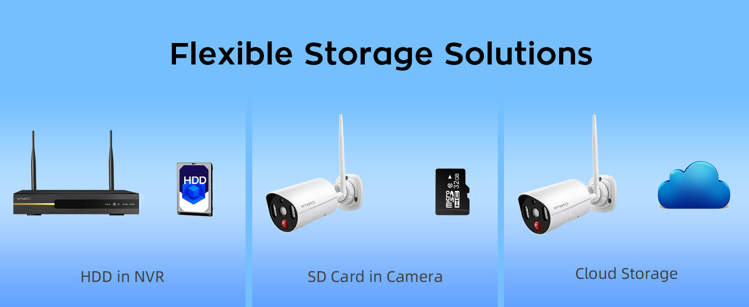 The 10CH wireless security camera system allows you to add 10 cameras in total,you have multiple choices of xmartO cameras