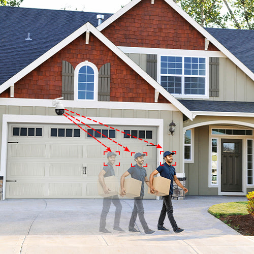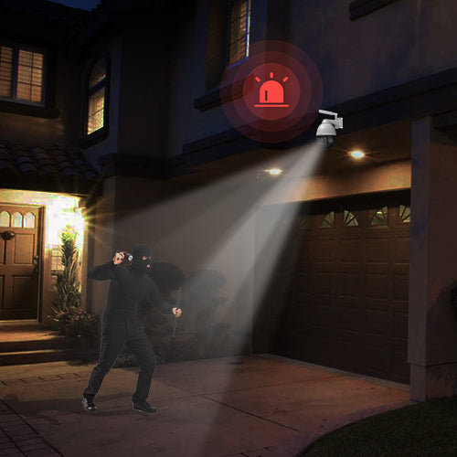 When intruders break into your house, the camera automatically turn on the flood light at night and will sound an automatic siren to deter intruders away. You can customize the siren to a voice message and warn the potential intruders.