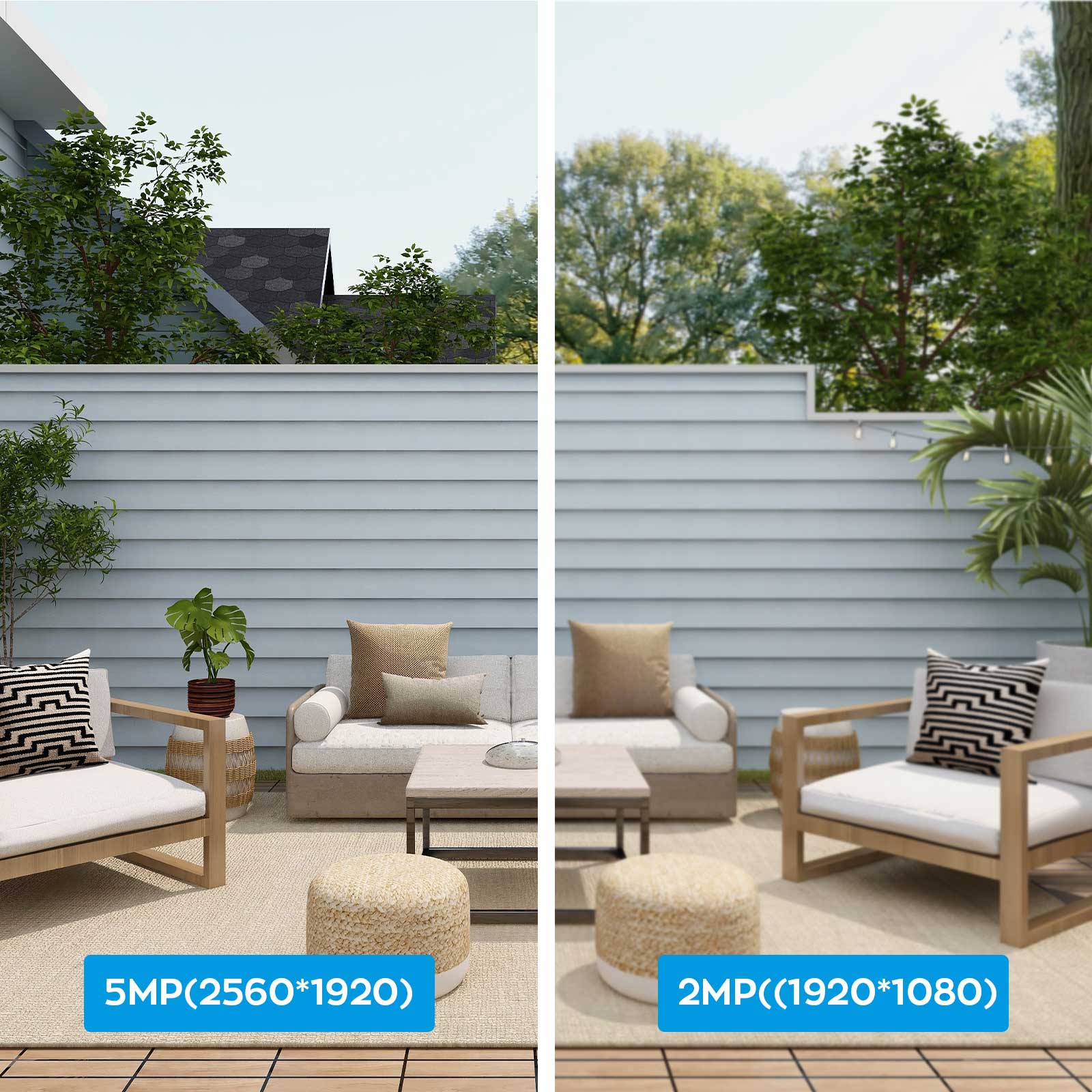 With 2560*1920 resolution, this security camera delivers 5 mega pixel ultra HD videos which can give