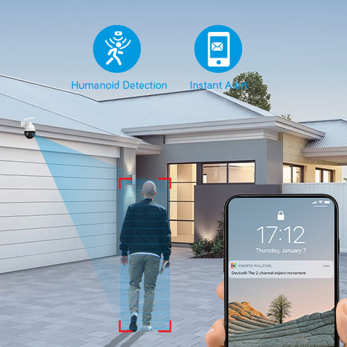 Powered with AI human detection, when people detected, the camera captures a human shape and send instant notification to your phone. It can reduce the false alarm. Tap to view the video if you find a photo is not enough.