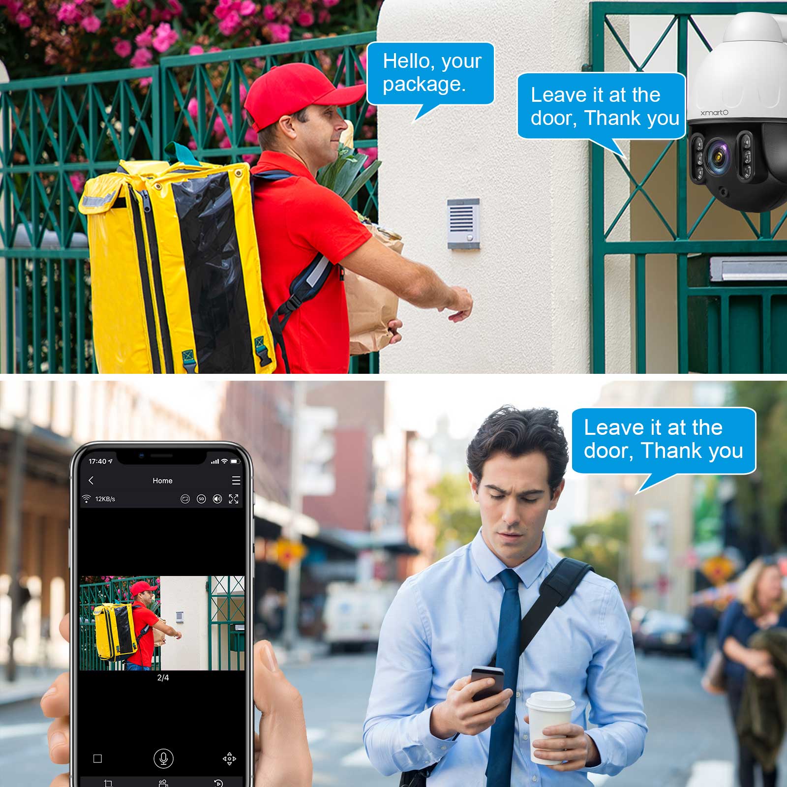With Built-in microphone and speaker, you can hear and talk back to your family, pet or the visitors on your mobile phone no matter where you are.
