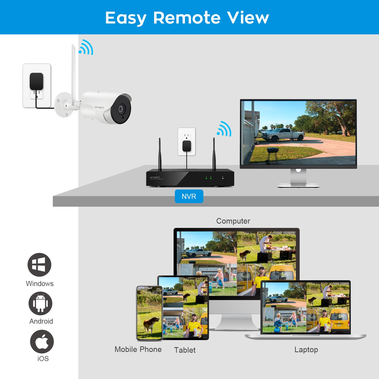 It's as easy as 1,2,3 to add the system to the WallPixel mobile Apps. With a single tap you can view 4 cameras simultaneously. Apps are available for iOS, Android, PC, Mac and Alexa.