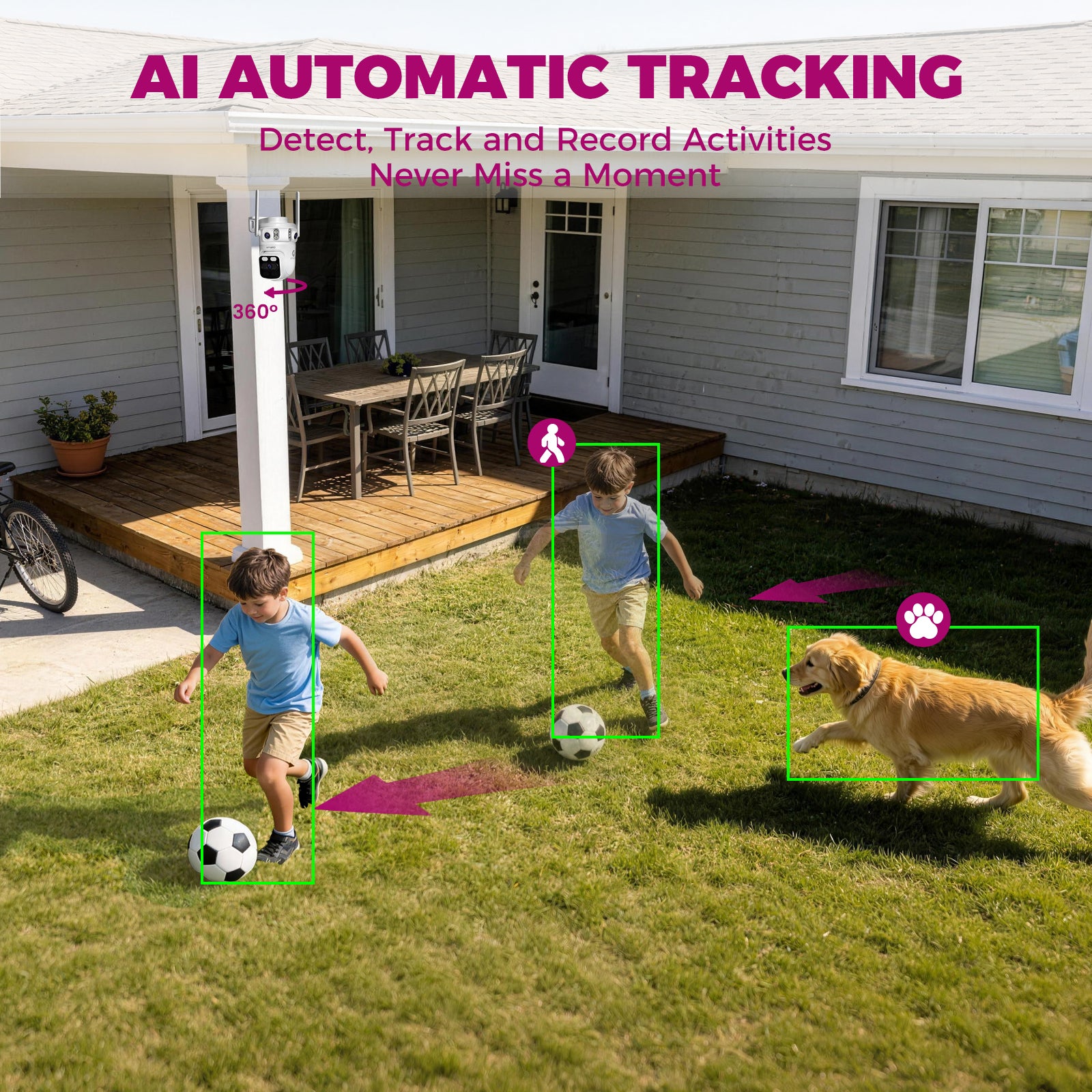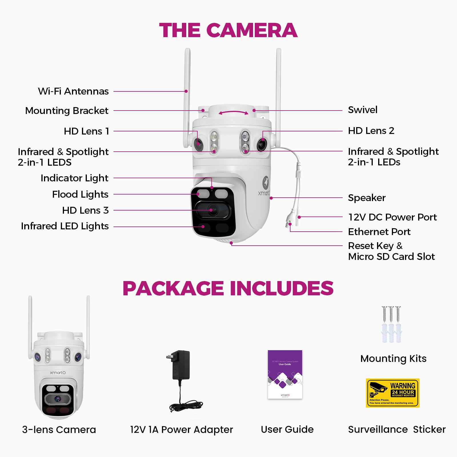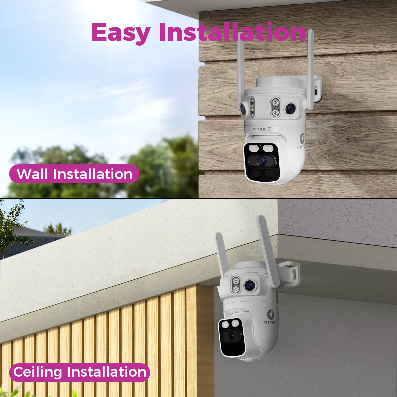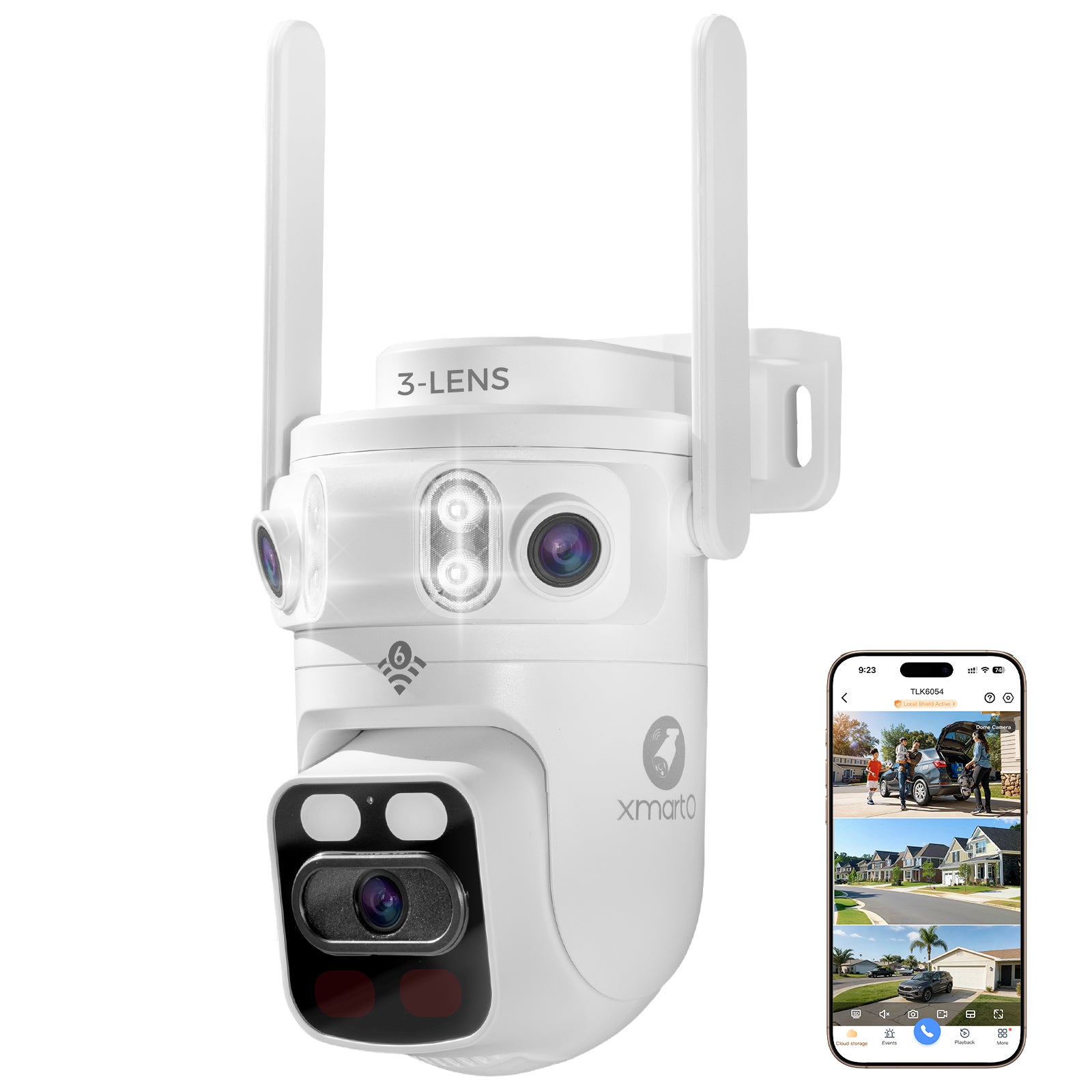 xmartO 6MP Tri-Lens Cam, Wireless Home Security System with 360° PTZ AI Tracking, 3-View/Cam, Long Range Wireless, Plug-in 24/7 Home Surveillance, Local & Mobile View