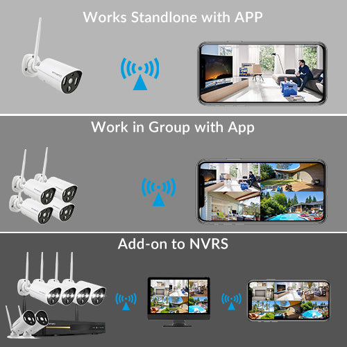You can use this camera alone, group multiple cameras to use or add this camera to an existed xmartO NVR or xmartO systems.