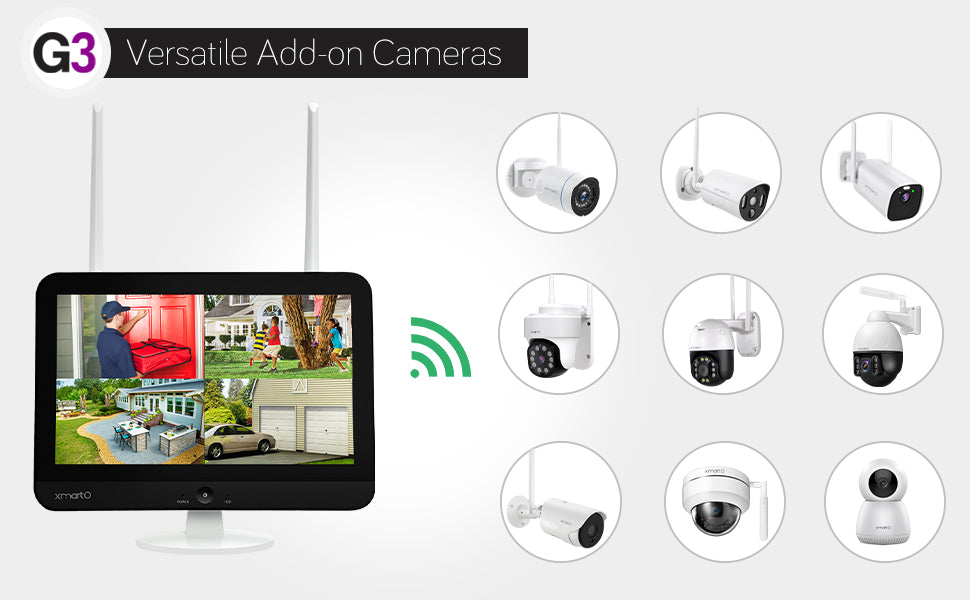 Now xmartO reveals the G3¹ (generation 3) WiFi camera systems with Auto WiFi Relay Technology. Cameras search nearby cameras automatically and relay back to its NVR (network video recoder, the base unit). No more manual settings required.