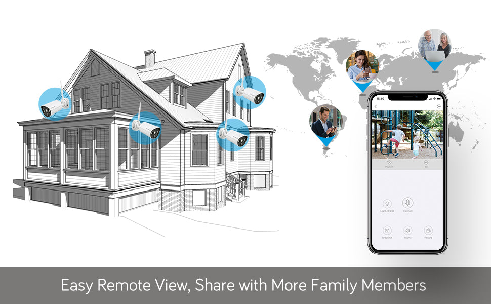 With Built-in microphone and speaker, you can hear and talk back to your family, pet or the visitors on your mobile phone no matter where you are.