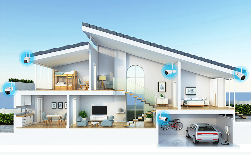 Powered with XMARTO's G3 Auto WiFi Relay technology, the security camera system automatically sets a closer camera as WiFi repeater for a further camera to boost its WiFi distance. This gives you more flexibilities of where to mount the cameras.