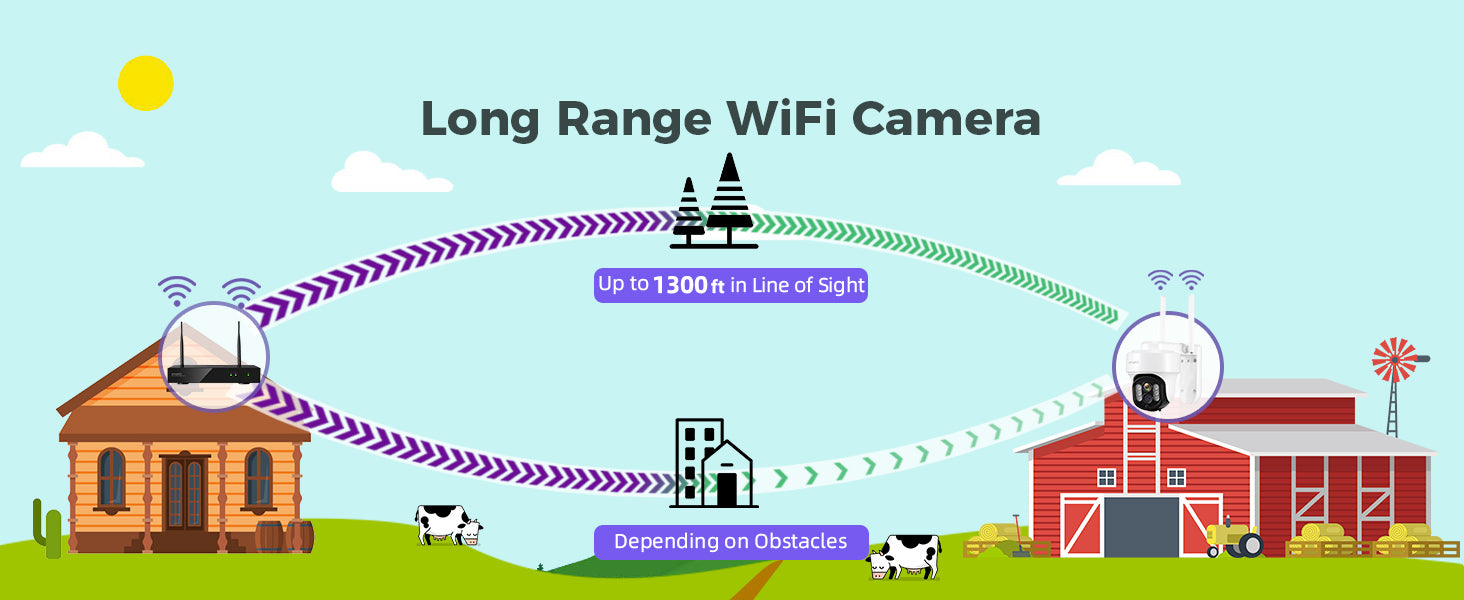 The cameras have 1000ft in line-of-sight long range WiFi to the NVR