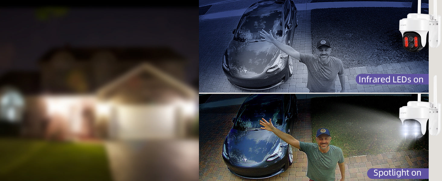 With motion-triggered spotlights, captures important details such as color of clothes and vehicles.